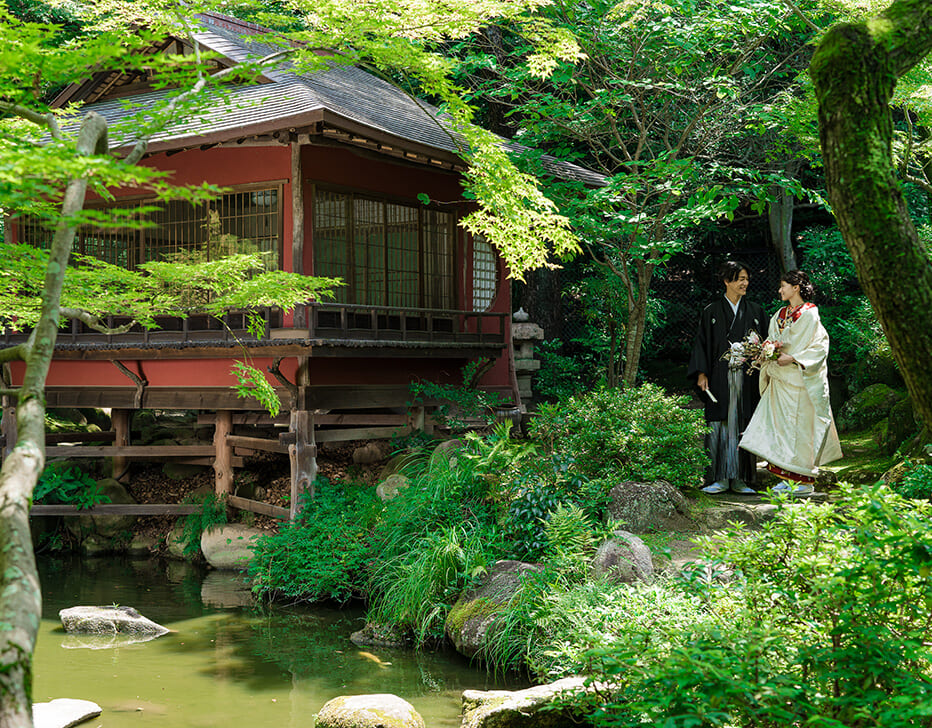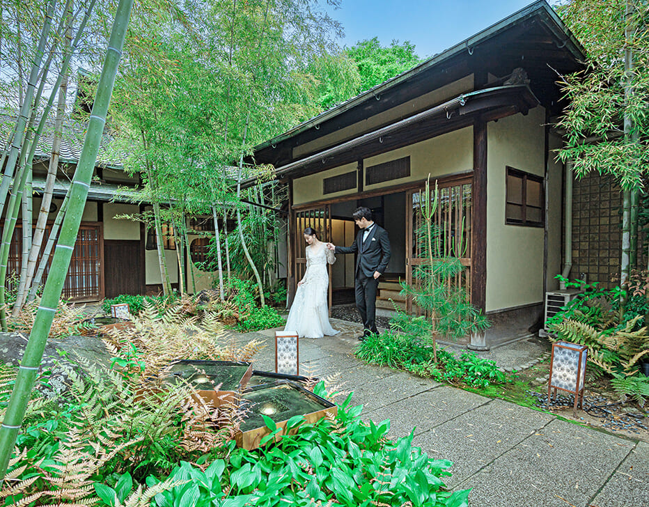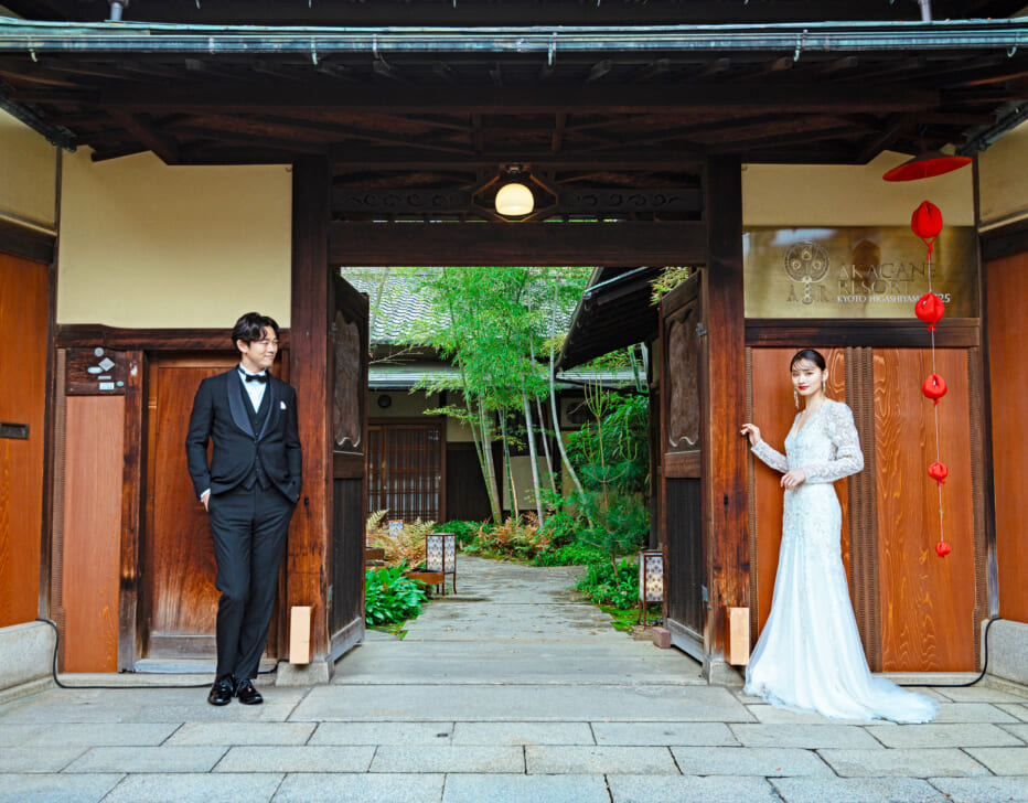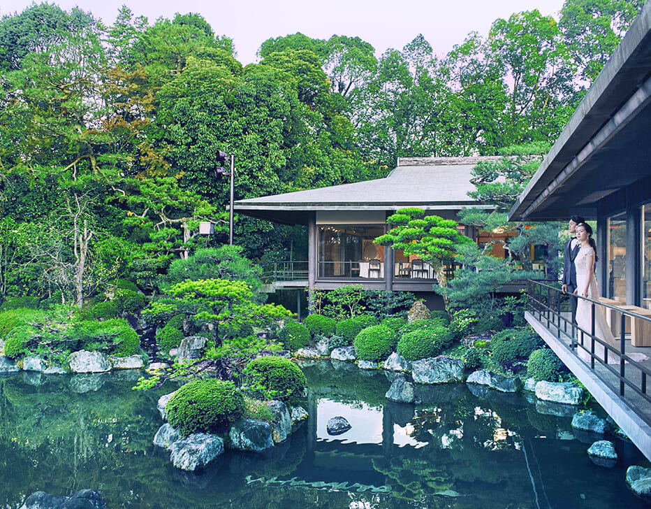 有名歴史遺産が残る京都東山。門をくぐるととそこには周囲の喧騒とは一線を画す広く深い、静寂の森。京都人も知らない東山の隠れ家ウェディングを「アカガネリゾート京都東山1925」で。
