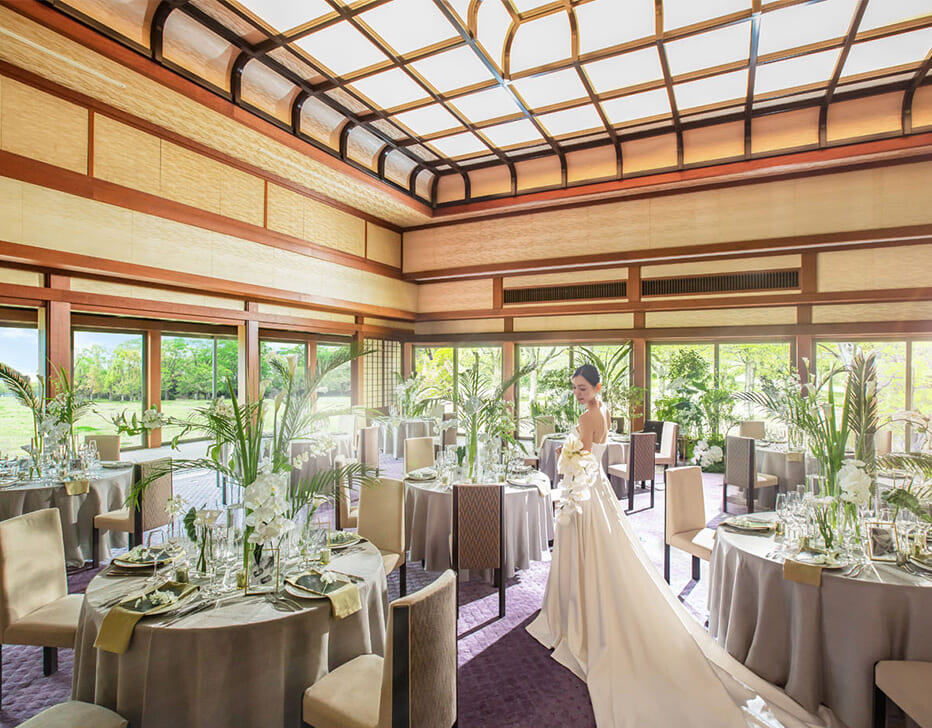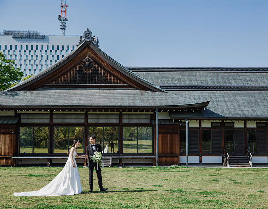 400年の歴史紡ぐ大阪城の麓、約2万坪の自然が広がる西の丸庭園に佇む「大阪城西の丸庭園 大阪迎賓館」。国際会議APEC95にて各国首脳を招きもてなす為、総工費8億円をかけて創建された格式ある会場。