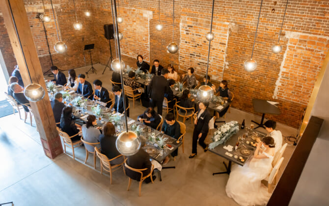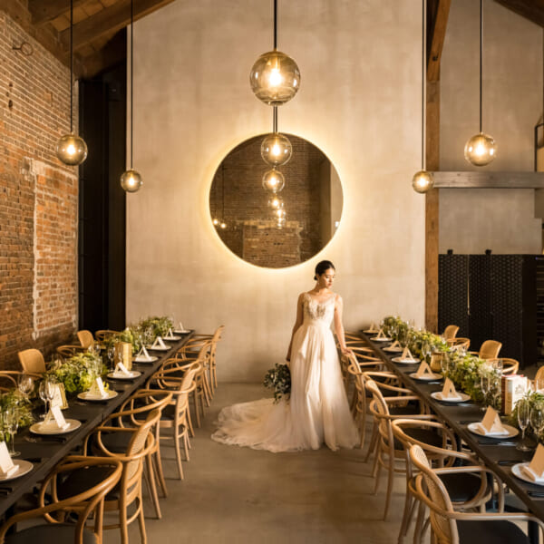 明治時代に建てられた時代背景を感じる赤レンガを活かした披露宴会場。高い天井とこだわりの什器、きらめく装飾で、北欧の温かみある雰囲気を演出します。一日一組限定の貸切空間で自然とみんなの距離が近くなる。歴史ある場所でこれからの未来を思い描く、大切な人との忘れられない思い出をここで。
