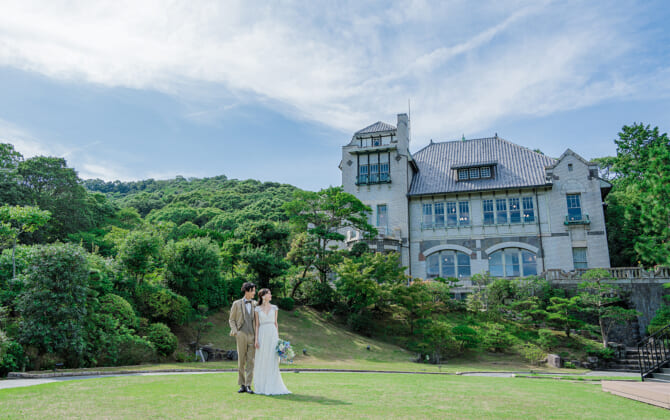 広大な敷地には、セレモニーで使用できるイングリッシュガーデンや、四季の風情感じる、100年後に最も美しく見えるように計算されて造形された名勝庭園が。日本全国で3つ程度のみ存在する特別な遺構である、敷地全体が兵庫県の重要有形文化財の本物の迎賓館「神戸迎賓館 旧西尾邸」で特別な一日を。