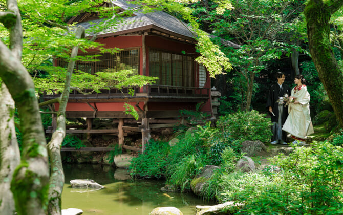 広大な緑に包まれて、おもてなしの心もそのままにクラシカルな文化財ウエディングを。